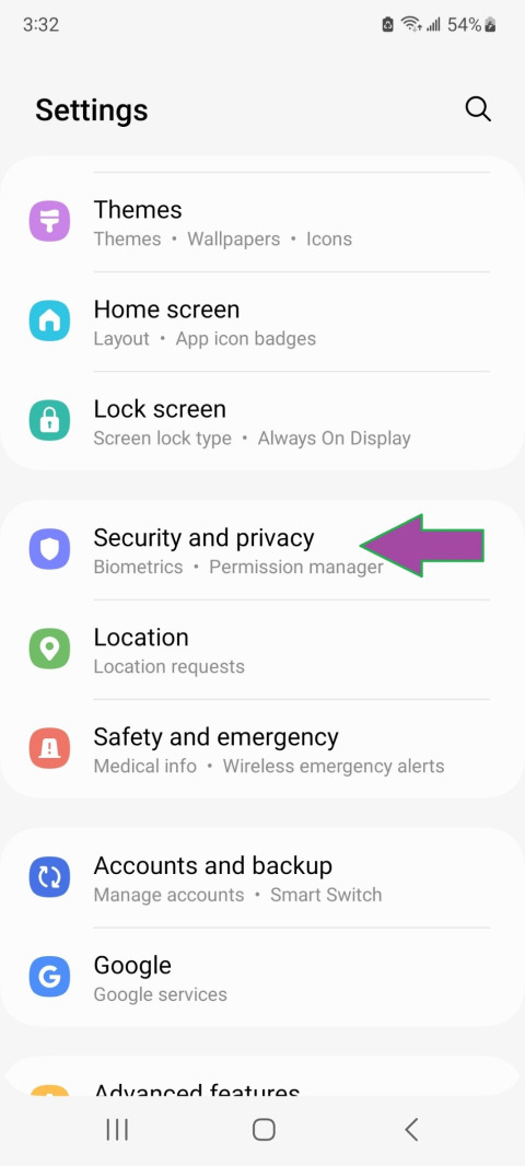 to the Settings/Security and privacy/